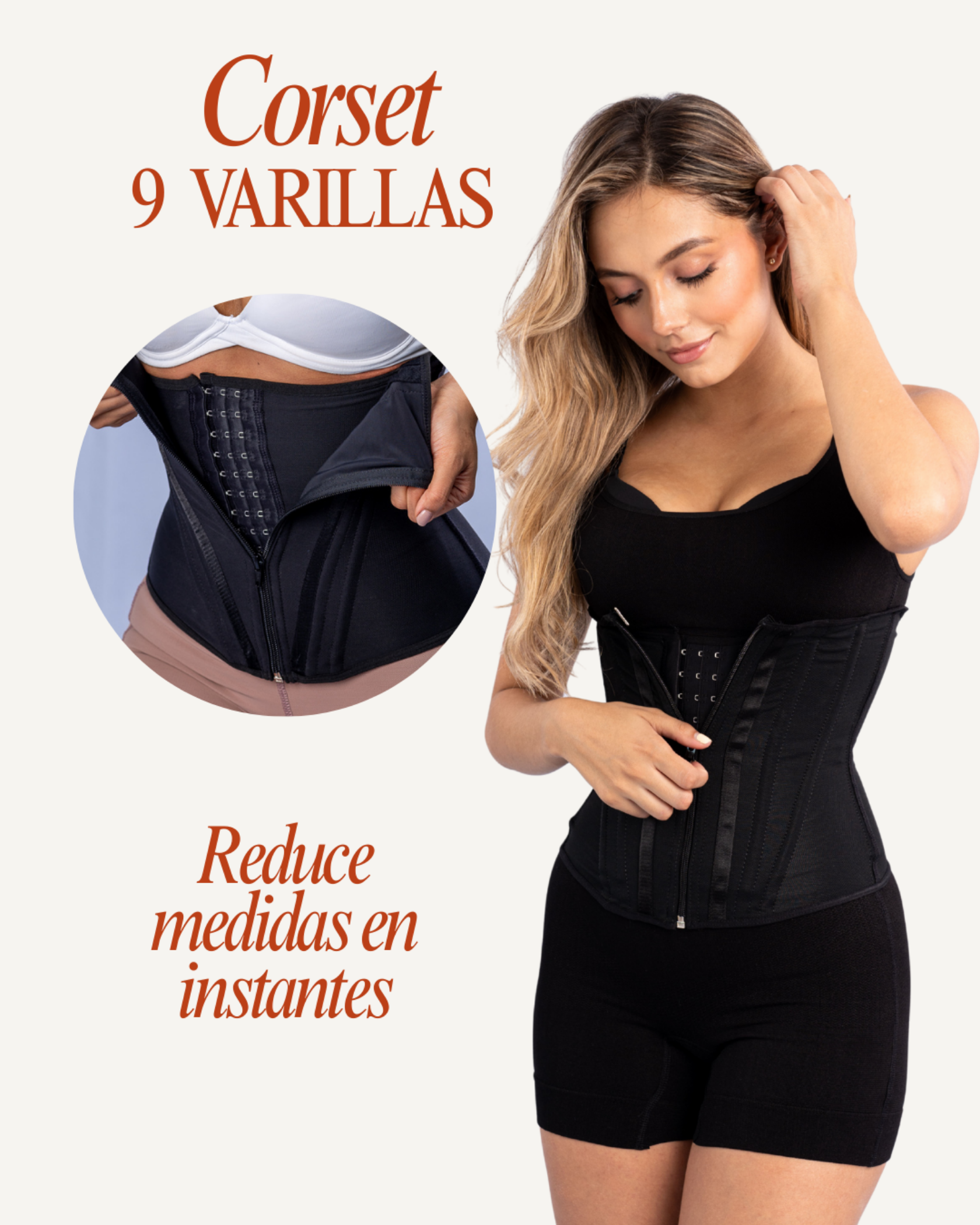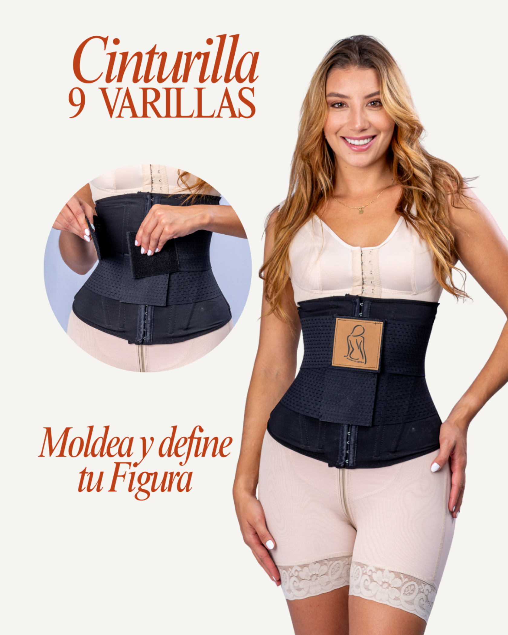 🔹 Cinturilla Reloj de Arena: 9 varillas de soporte distribuidas estratégicamente + doble cierre (broches internos con 3 niveles de ajuste y cremallera externa reforzada). Brinda máxima compresión, moldeo visible y reducción de medidas inmediata.