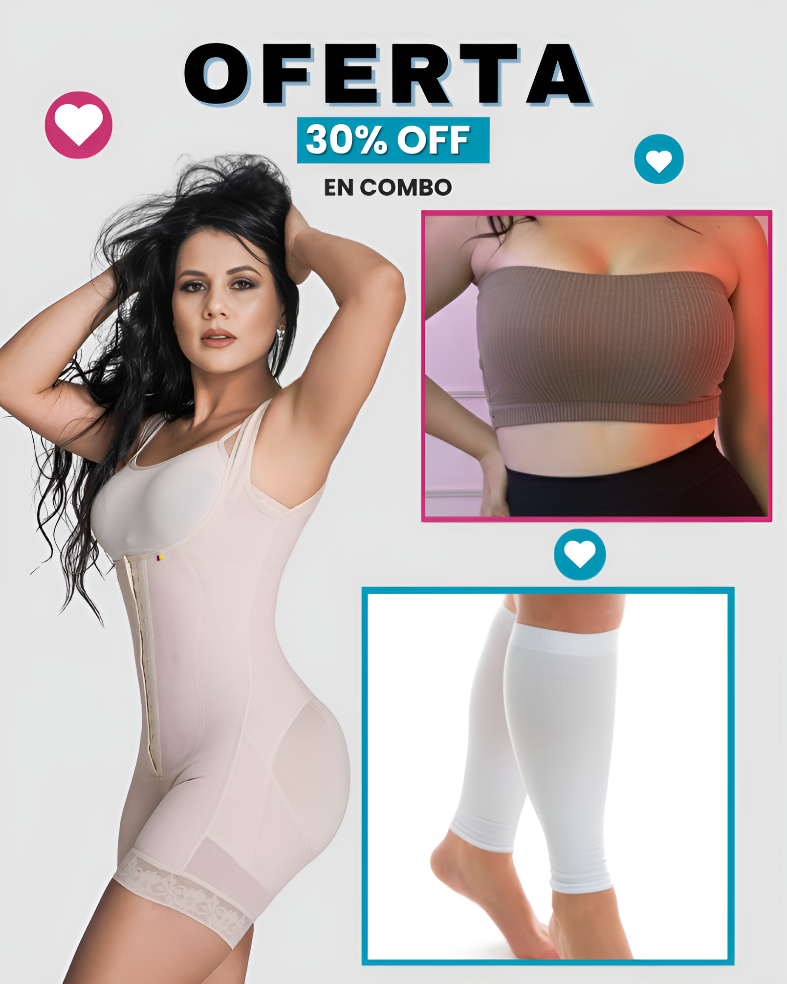 📦 Combo incluye: Faja realzadora + Top moldeador + Medias terapéuticas